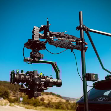 Le Camera Car est entièrement équipé d’un système de stabilisation Black Arm et Ronin 2, complété par des moniteurs 7” et 14” permettant un contrôle précis de l’image en temps réel et une exploitation optimale sur le terrain.